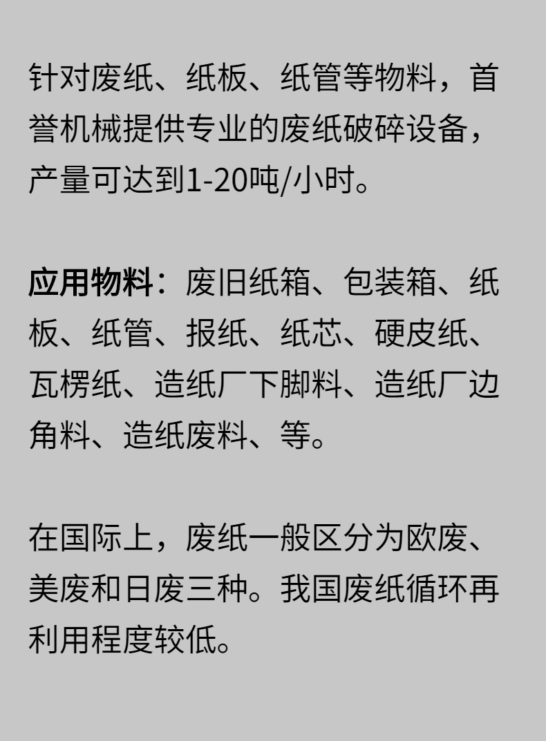 發(fā)布者:首譽(yù) 關(guān)鍵詞:廢紙破碎設(shè)備,廢紙撕碎機(jī),紙管破碎機(jī) 瀏覽量: