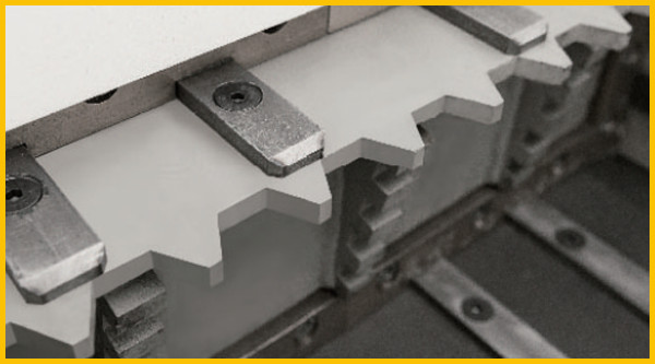 動(dòng)刀采用CrMoV高合金耐磨鋼,有多種不同配置成分材質(zhì)可供選擇,可更換角度多次使用。